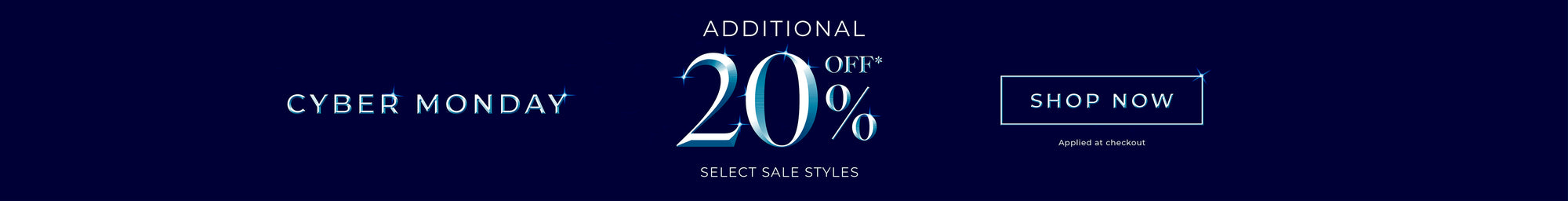 *Enjoy an additional 20% OFF select sale styles, applied at checkout. Online only. Offer valid December 1, 2025, until 11:59pm EST. Exclusions apply. Gift cards, special orders, alterations, and shipping are excluded. No adjustments on prior purchases. Offers cannot be combined.